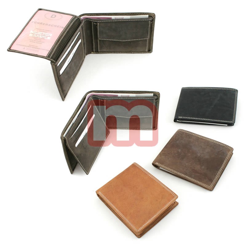 Sie erhalten bei diesem Angebot Geldbörsen aus echtem Leder in modisch aktuellen Farben (siehe Bilder). Diese Geldbörsen bieten zahlreiche Fächer für Kredit- und EC-Karten, Ausweise, Visitenkarten, Notizen, Geldscheine und vieles mehr. Loses Münzgeld ist in separaten Fächern sicher untergebracht. Bei den Verschlüssen handelt es sich um Druckknöpfe bzw. Reißverschlüsse. Original verpackte Neuware. Bei diesem Angebot können Sie wählen: 1VE: 10 Geldbörsen Farben: camel, schwarz, braun, dunkelbraun (wählbar) Artikel-Nr.: 05_0305 Preis je VE: 69,50 EUR Preis einzeln: 6,95 EUR oder 1VE: 40 Geldbörsen Farben: camel, schwarz, braun, dunkelbraun (gemischt) Artikel-Nr.: 05_0305 Preis je VE: 238,00 EUR Preis einzeln: 5,95 EUR