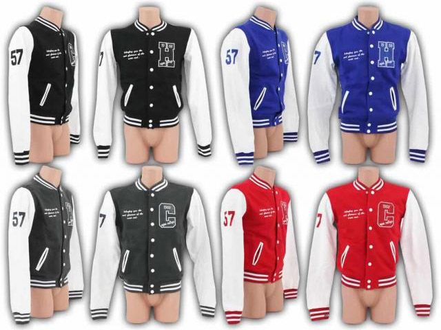 50 College Jacken Collegejacke Oldschool School Style Unisex Damen Herren - 100% Baumwolle - S-XXL - Größen Farben und Buchstaben gemischt - nur 11,90 EUR je Jacke Sie erhalten bei diesem Angebot einen gemischten Posten von 50 Jacken im coolen College Style. Jede Jacke ist aus 100% Baumwolle gefertigt, ausgestattet mit 2 Taschen auf der Außenseite und Druckknöpfen als Verschluss. Die Größen (S-XXL), die Farben (Blau, Rot, Grau oder Schwarz) und die Buchstaben, welche auf der linken Brustseite aufgenäht sind (C oder H), sind nach dem Zufallsprinzip gemischt. Original verpackte Neuware. 1VE: 50 College Jacken Größen: S-XXL (gemischt) Farben: Blau, Rot, Grau oder Schwarz (gemischt) Material: 100% Baumwolle Artikel-Nr.: college_jacke Preis je VE (50 College Jacken): 595,- EUR Preis je College Jacke: 11,90 EUR