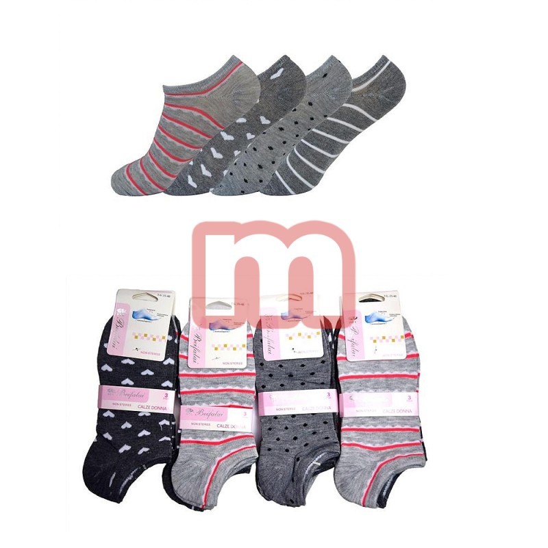 Haut Sympatische Damensocken mit hervorragendem Tragekomfort, perfekt geeignet für halbhohe Schuche. Gemischt in verschiedenen Größen und Farben. Sitzt perfekt am Fuß. Idealer Klimaausgleich, strapazierfähig und formstabil. Elastischer Gummibund für dauerhaft guten Sitz. 1VE: 360 Paar Größe pro VE: 35-40 (gemischt) Farbe: verschiedene Farben (gemischt, siehe Bild) Material: 95% Baumwolle, 5% Elasthan Artikel-Nr.: 01_G-89