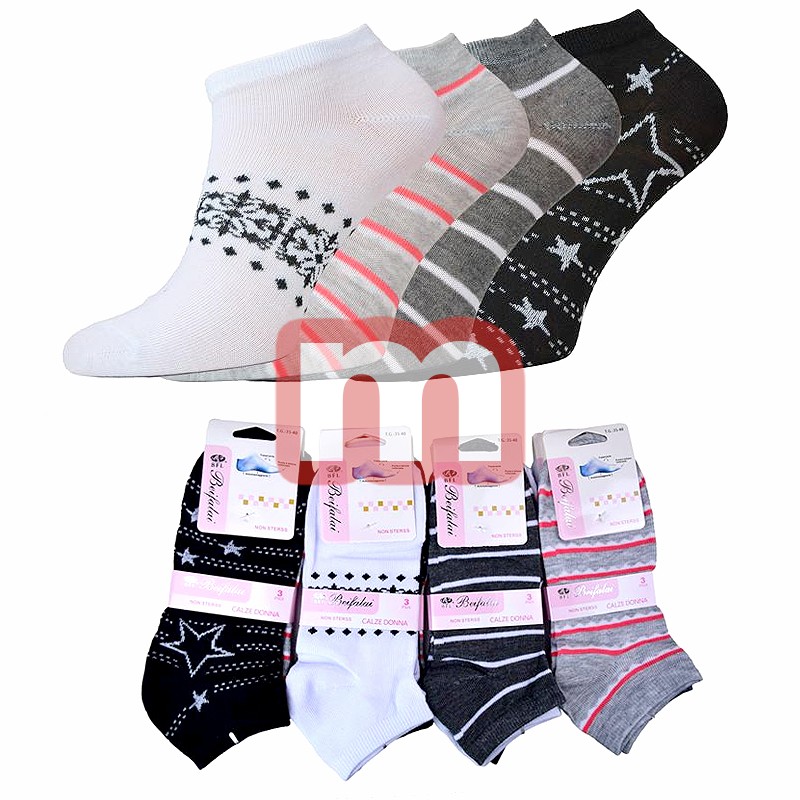 Haut Sympatische Damensocken mit hervorragendem Tragekomfort, perfekt geeignet für halbhohe Schuche. Gemischt in verschiedenen Größen und Farben. Sitzt perfekt am Fuß. Idealer Klimaausgleich, strapazierfähig und formstabil. Elastischer Gummibund für dauerhaft guten Sitz. 1VE: 300 Paar Größe pro VE: 35-40 (gemischt) Farbe: verschiedene Farben (gemischt, siehe Bild) Material: 95% Baumwolle, 5% Elasthan Artikel-Nr.: 01_G-83