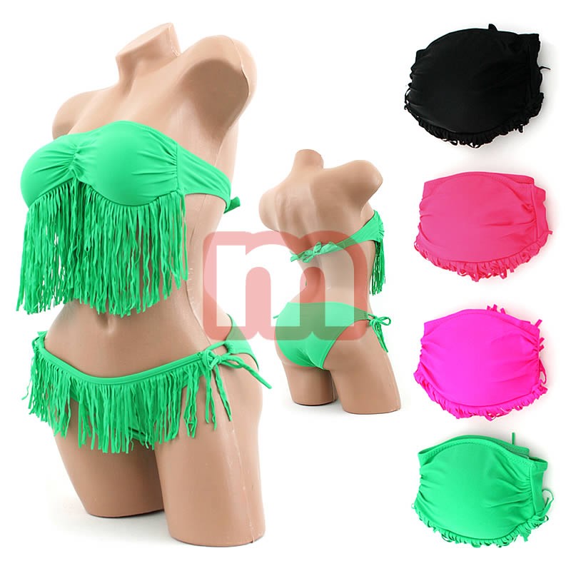 Sie erhalten bei diesem Angebot einen gemischten Posten mit modischen sexy Damen Bikini Sets Bademode mit Fransen, jeweils bestehend aus Bikinioberteil mit passendem Bikinislip. Enthalten sind verschiedene Farben und Größen, jeweils gemischt. Angenehme Qualität und weiches Material. Original verpackte Neuware. 1VE: 20 Bikini Sets Farben: schwarz, rot, pink, grün (gemischt) Größen: 36-44 (gemischt) Material: 80% Polyamid, 20% Elasthan Artikel-Nr.: 01_L1501-1 Preis je VE: 199,00 EUR Preis einzeln: 9,95 EUR