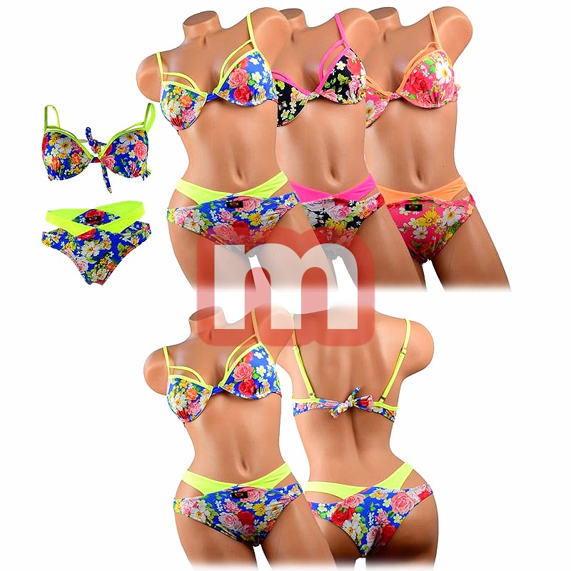Sie erhalten bei diesem Angebot einen gemischten Posten mit modischen sexy Damen Bikini Sets Bademode, jeweils bestehend aus Bikinioberteil mit passendem Bikinislip. Enthalten sind verschiedene Farben und Größen, jeweils gemischt. Angenehme Qualität und weiches Material. Original verpackte Neuware. 1VE: 32 Sets Farben: gelb, pink, orange (gemischt, siehe Bild) Musterung: siehe Bild Größen: 40, 42, 44, 46, 48 (gemischt) Material: 82% Polyamid, 18% Elasthan Artikel-Nr.: 01_7915 Preis je VE: 220,80 EUR Preis einzeln: 6,90 EUR