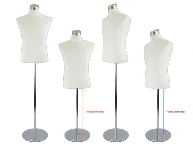 1 x Torso Mann Büste Schneiderpuppe Schneiderbüste Oberkörper in Weiß mit Ständer und Höhenverstellbar Sie erhalten bei diesem Angebot 1 x männlichen Torso in Weiß mit passendem Ständer wie abgebildet. Der Torso lässt sich in der Höhe verstellen (Gesamthöhe inkl. Torso mind. 1,35 m bis max. 1,80 m). Stabiler Torso mit weißem Stoffbezug, welcher sich bei Bedarf leicht abnehmen lässt. Original verpackte Neuware. Farbe des Torso: Weiß Maße des Torso: 32 cm (Breite Taille) und 75 cm (Gesamthöhe) Mind. Höhe inkl. Torso: 1,35 m Max. Höhe inkl. Torso: 1,80 m Artikel-Nr.: schneiderpuppe_mann_weiss Preis je Torso (inkl. Ständer): 62,90 EUR