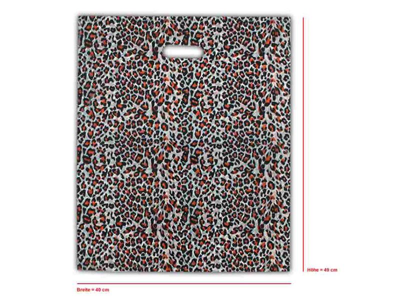 500 Modische Tragetaschen Plastiktüten Tüten im Tiger-Design Maße 40 x 49 cm (B x H) - nur 0,13 EUR je Tragetasche Sie erhalten bei diesem Angebot 500 modische Tragetaschen mit Griffloch im abgebildeten Tiger-Design. Neuware - original verpackt. 1VE: 500 Tragetaschen Maße: 40 x 49 cm (B x H) Muster bzw. Motiv: siehe Bilder Preis je VE (500 Tragetaschen): 65,- EUR Preis je Tragetasche: 0,13 EUR