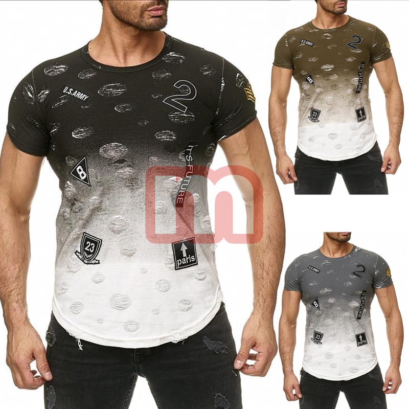 Sie erhalten bei diesem Angebot einen gemischten Posten von modischen hochwertigen Herren Sport Freizeit T-Shirts kurzarm Oberteile mit Musterung bzw. Motiv (siehe Bilder). Enthalten ist das abgebildete Modell in verschiedenen Größen, jeweils gemischt nach dem Zufallsprinzip. Original verpackte Neuware. 1VE: 24 Stück Größen: M, L, XL, XXL (gemischt) Farben: schwarz, grau, grün (gemischt) Artikel-Nr.: 02_ST-08