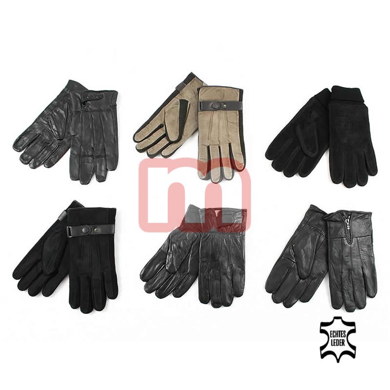 Gemischter Posten von 60 Paar Herren Leder Handschuhe echtes Leder & verschiedene Modelle - nur 2,90 EUR je Paar Sie erhalten in diesem Angebot einen gemischten Posten von 60 Paar Herren Leder Handschuhen aus echtem Leder. Enthalten sind verschiedene Modelle (z.T. mit Applikationen, Knöpfen, Gummibündchen, Reißverschlüssen, u.ä.) und Größen. Jedes Paar ist einzeln verpackt und NEU. 1VE: 60 Paar Größen: L bis XXL (gemischt) Farben und Modelle: siehe Bilder (gemischt) Artikel Nr: 02_Bol_Led_H Preis je VE (60 Paar): 174,- EUR Preis je Paar: 2,90 EUR