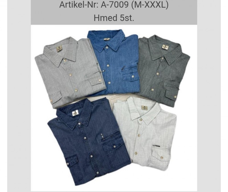 Sie erhalten bei diesem Angebot einen gemischten Posten von 5 Herren Langarm Hemden in den abgebildeten Farben. Die Hemden sind angenehm zu tragen. Jedes Hemd ist Neu und einzeln verpackt. 1VE: 5 Hemden Größen: M-XXXL (gemischt) Farben: siehe Bilder (wählbar) Material: 65% Baumwolle, 35% Polyester Artikel-Nr.: A-7009 Preis je VE (5 Hemden): 34,75 EUR Preis je Hemd: 6,95 EUR