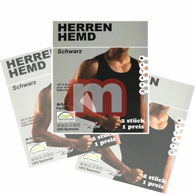 1VE: 60 Unterhemden (30 Pakete zu je 2 Stück) Größen: 5 bis 10 (gemischt) Farben: schwarz Materialien: 100% Baumwolle Artikel Nr: 02_040-black Preis je VE (80 Unterhemden): 117 EUR Preis je Unterhemd: 1,95 EUR