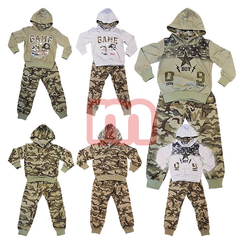 Sie erhalten bei diesem Angebot einen gemischten Posten von Kinder Jogging Freizeit Sport Anzügen im Set (siehe Bilder) im zeitlosen Camouflage-Look. Enthalten sind verschiedene Modelle. Jedes Set besteht jeweils aus Langarm Oberteil mit passender Hose, ausgestattet mit Gummibündchen an Oberteil und Hose. Die Farbmusterungen und Größen sind jeweils nach dem Zufallsprinzip gemischt. Original verpackte Neuware. 1VE: 20 Stück Größen: 104-152 (gemischt) Farben: siehe Bilder (gemischt) Artikel-Nr.: 03_DJ-953_954 Preis je VE: 195,00 EUR Preis einzeln: 9,75 EUR