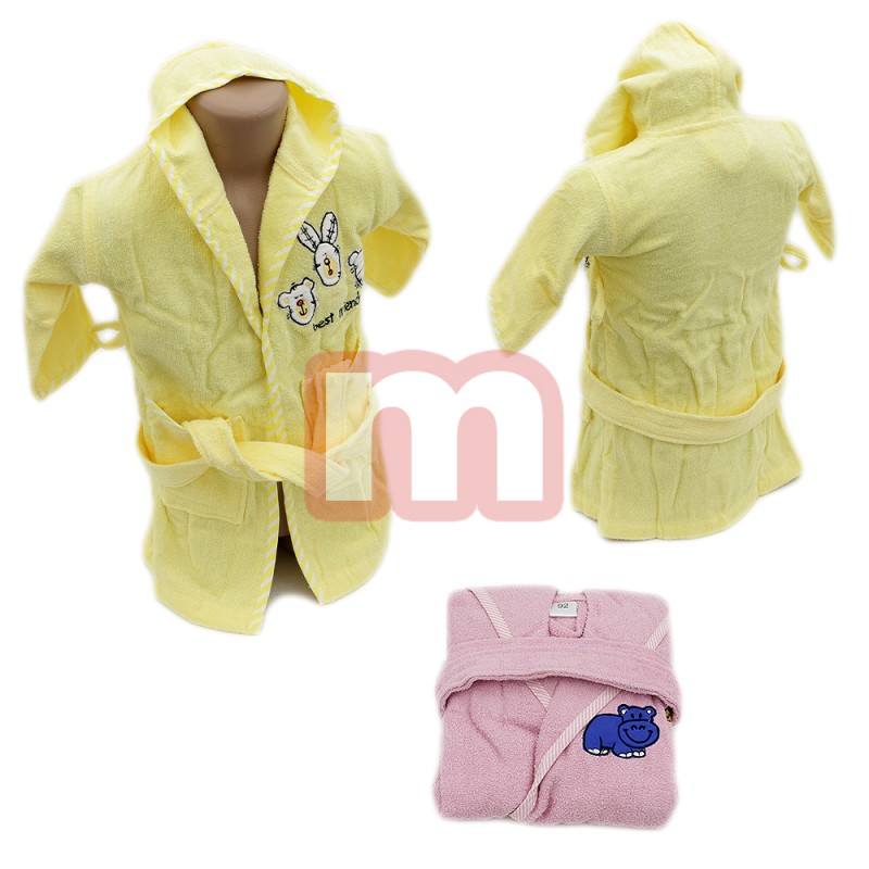 Sie erhalten einen Posten von 40 Kinder Mädchen Jungen Bademänteln Morgenmänteln, gemischt in den abgebildeten Farben und den Größen 80-104. Original verpackte Neuware. 1VE: 40 Bademäntel Größen: 80-104 Farben: gelb, pink (gemishct) Materialien: 100% Baumwolle Artikel-Nr.: 03_1221 Preis je VE (40Bademäntel): 220,00 EUR Preis je Bademantel: 5,50 EUR