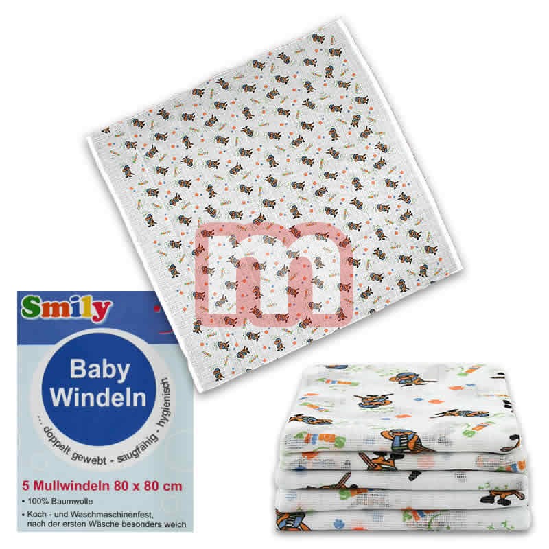 Sie erhalten einen Posten von 50 Baby Mädchen Jungen Mull Windeln, doppelt gewebt, saugfähig und hygiensich - gefertigt aus 100% Baumwolle. Enthalten ist das abgebildete Modell mit Motiven in der Größe 80 x 80 cm, Koch- und Waschmaschienenfest. Angenehme Qualität und weiches Material. Original verpackte Neuware. 1VE: 50 Windeln Modell und Motive: siehe Bilder Farben: siehe Bilder Größe: 80 x 80 cm Material: 100% Baumwolle Artikel-Nr.: 03_mullwindeln-smily Preis je VE (50 Windeln): 47,50 EUR Preis je Windel: 0,95 EUR