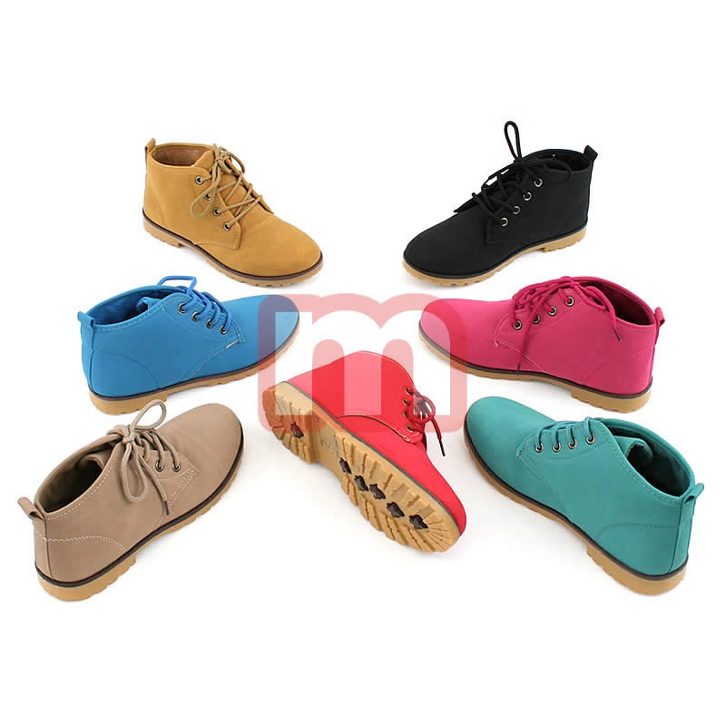 Schicke Damen Winter Schuhe Boots Schnürer in modischen Farben in Wildlederoptik (Imitat), jeweils ausgestattet mit einer stabilen Sohle mit Profil und Schnürbändern.