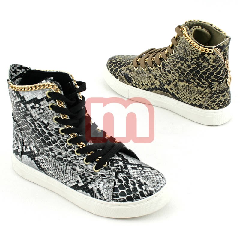 Modische Damen Freizeit Schuhe Sneaker in tollem Design, jeweils ausgestattet mit Musterung, Applikationen, solider Sohle und Schnürbändern, gemischt in verschiedenen Größen. Die Farbe können Sie wählen. Dieses Modell stammt aus der aktuellen Kollektion. Original verpackte Neuware. 1VE: 12 Paar Farben: gold, silber (wählbar) Größe: 36-41 (gemischt) Artikel-Nr.: 01_k-2 Preis je VE: 94,80 EUR Preis einzeln: 7,90 EUR