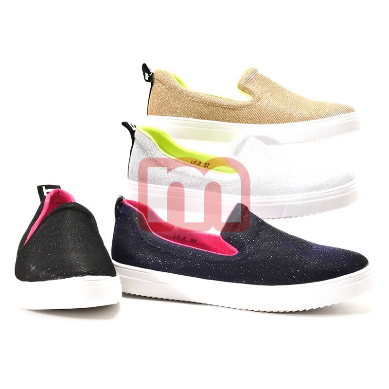 Modische Damen Freizeit Schuhe Sneaker Slipper, jeweils ausgestattet mit solider Sohle und Glitzer, gemischt in verschiedenen Größen. Die Farbe können Sie wählen. Dieses Modell stammt aus der aktuellen Kollektion. Original verpackte Neuware. 1VE: 12 Paar Farbe: schwarz, blau, silber, gold (wählbar) Größe: 36-41 (gemischt) Artikel-Nr.: 01_LF-2 Preis je VE: 131,40 EUR Preis einzeln: 10,95 EUR