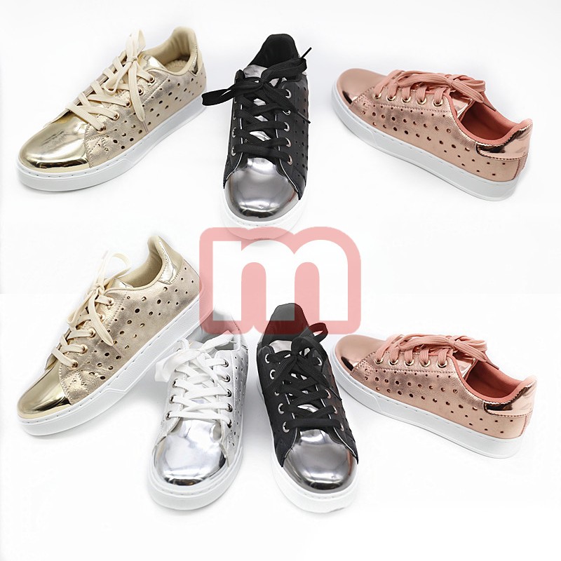 Modische hochwertige Damen Freizeit Sport Schuhe Sneaker, jeweils ausgestattet mit solider Sohle und Schnürsenkeln, gemischt in verschiedenen Größen. Die Farbe können Sie wählen. Dieses Modell stammt aus der aktuellen Kollektion. Original verpackte Neuware. 1VE: 12 Paar Farbe: schwarz, weiß, pink, gold Größe: 36-41