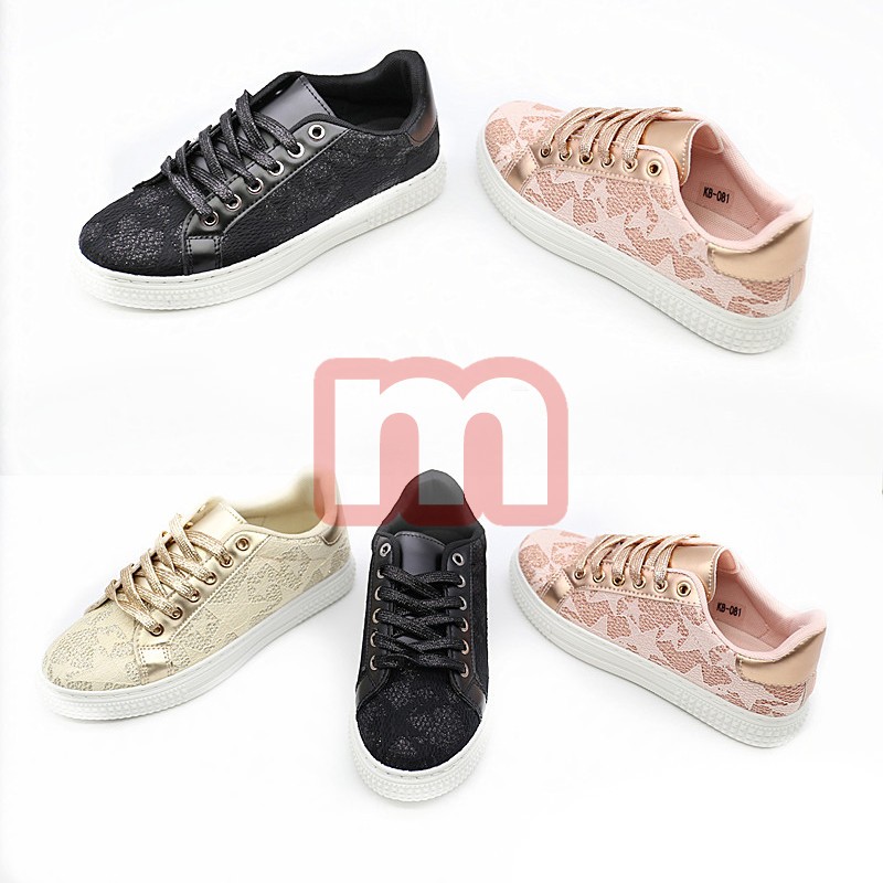 Modische hochwertige Damen Freizeit Sport Schuhe Sneaker, jeweils ausgestattet mit solider Sohle und Schnürsenkeln, gemischt in verschiedenen Größen. Die Farbe können Sie wählen. Dieses Modell stammt aus der aktuellen Kollektion. Original verpackte Neuware. 1VE: 12 Paar Farbe: schwarz, gold, champagner Größe: 36-41