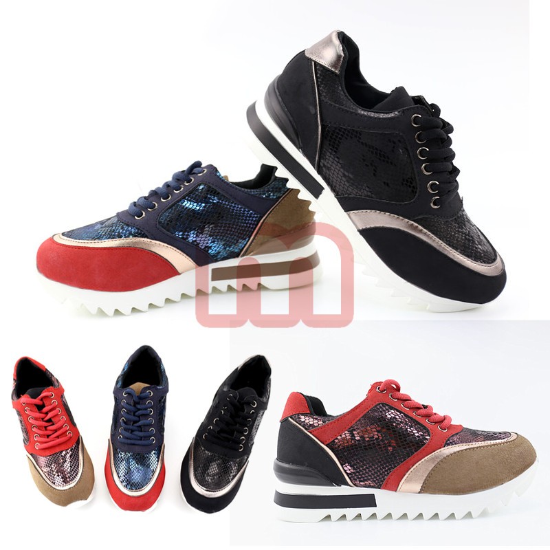 Modische hochwertige Damen Freizeit Sport Schuhe Sneaker, jeweils ausgestattet mit solider Sohle und Schnürsenkeln, gemischt in verschiedenen Größen. Die Farbe können Sie wählen. Dieses Modell stammt aus der aktuellen Kollektion. Original verpackte Neuware. 1VE: 12 Paar Farbe: schwarz, blau, rot Größe: 36-41