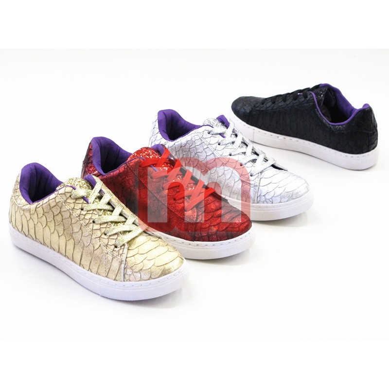 Modische hochwertige Damen Freizeit Sport Schuhe Sneaker, jeweils ausgestattet mit solider Sohle, Schnürsenkeln und modischem Muster, gemischt in verschiedenen Größen. Die Farben können Sie wählen. Dieses Modell stammt aus der aktuellen Kollektion. Original verpackte Neuware. 1VE: 12 Paar Farben: schwarz, rot, gold, silber Größe: 36-41 (gemischt) Artikel-Nr.: 01_88-517 Preis je VE: 117,00 EUR Preis einzeln: 9,75 EUR