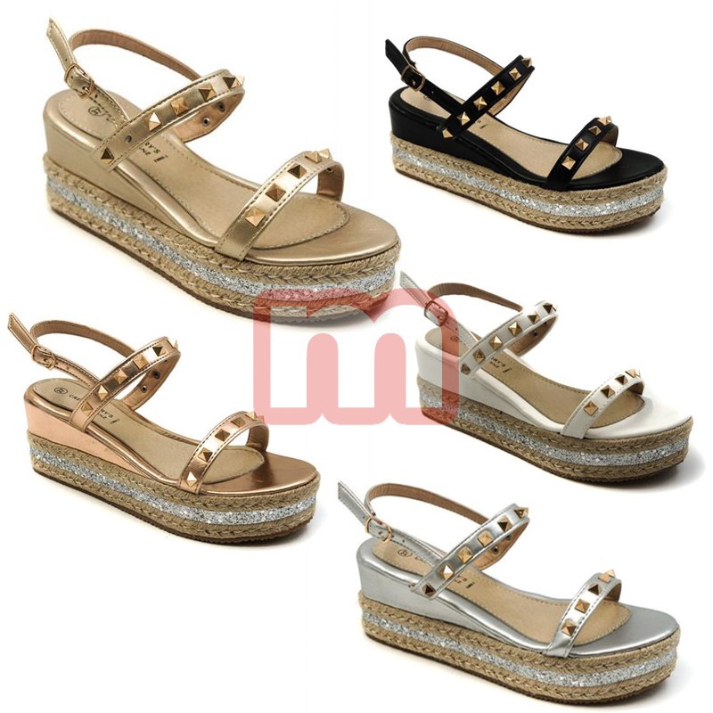 Zeitlos modische Damen Sommer Sandalen Pumps Schuhe, jeweils ausgestattet mit dezentem Absatz, Riemchen und Druckknöpfen, gemischt in den Größen 36-41. Die Farbe können Sie wählen. Dieses Modell stammt aus der aktuellen Kollektion. Original verpackte Neuware. 1VE: 12 Paar Farbe: champagner, schwarz, gold, silber, weiß (wählbar) Größe: 36-41 (gemischt) Artikel-Nr.: 01_EM80-2-CR