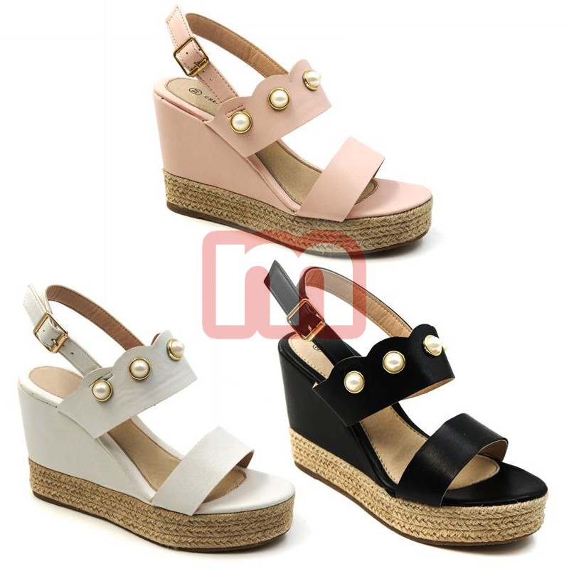 Zeitlos modische Damen Sommer Sandalen Pumps Schuhe, jeweils ausgestattet mit dezentem Absatz, Riemchen und Druckknöpfen, gemischt in den Größen 36-41. Die Farbe können Sie wählen. Dieses Modell stammt aus der aktuellen Kollektion. Original verpackte Neuware. 1VE: 12 Paar Farbe: schwarz, pink, weiß (wählbar) Größe: 36-41 (gemischt) Artikel-Nr.: 01_EM80-5-CR