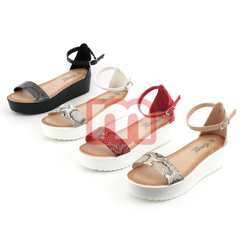 Zeitlos modische Damen Sommer Sandalen Pumps Schuhe mit Musterung, jeweils ausgestattet mit Plateausohle und Riemchen, gemischt in den Größen 36-41. Die Farbe können Sie wählen. Dieses Modell stammt aus der aktuellen Kollektion. Original verpackte Neuware. 1VE: 12 Paar Farbe: beige, schwarz, weiß, rot (wählbar) Größe: 36-41 (gemischt) Artikel-Nr.: 01_pu1405-31-by Preis je VE: 106,80 EUR Preis einzeln: 8,90 EUR