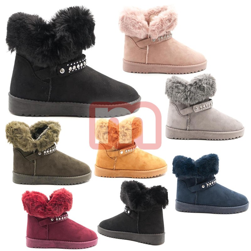 Modische Damen Schnee Winter Stiefel Boots Schuhe, jeweils ausgestattet mit einer soliden Sohle und Schaft, gemischt in verschiedenen Farben und Größen.