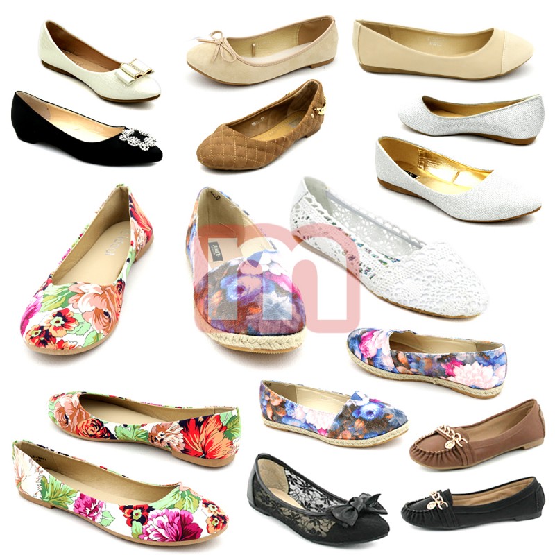Großer Mischposten mit modischen Damen Schuhen Slipper Halbschuhen Ballerinas. Enthalten sind verschiedene Modelle, Farben und Muster, gemischt in den Größen 36-41.