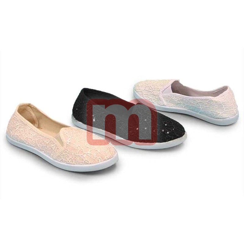 Modische Damen Schuhe Slipper Halbschuhe Ballerina mit Musterung. Enthalten ist das abgebildete Modell, gemischt in den Größen 36-41. Die Farbe können Sie wählen. Dieses Modell stammt aus der aktuellen Kollektion. Original verpackte Neuware. 1VE: 12 Paar Farbe: schwarz, weiß, beige Größe: 36-41 (gemischt) Artikel-Nr.: 01_JM-15 Preis je VE: 62,40 EUR Preis einzeln: 5,20 EUR