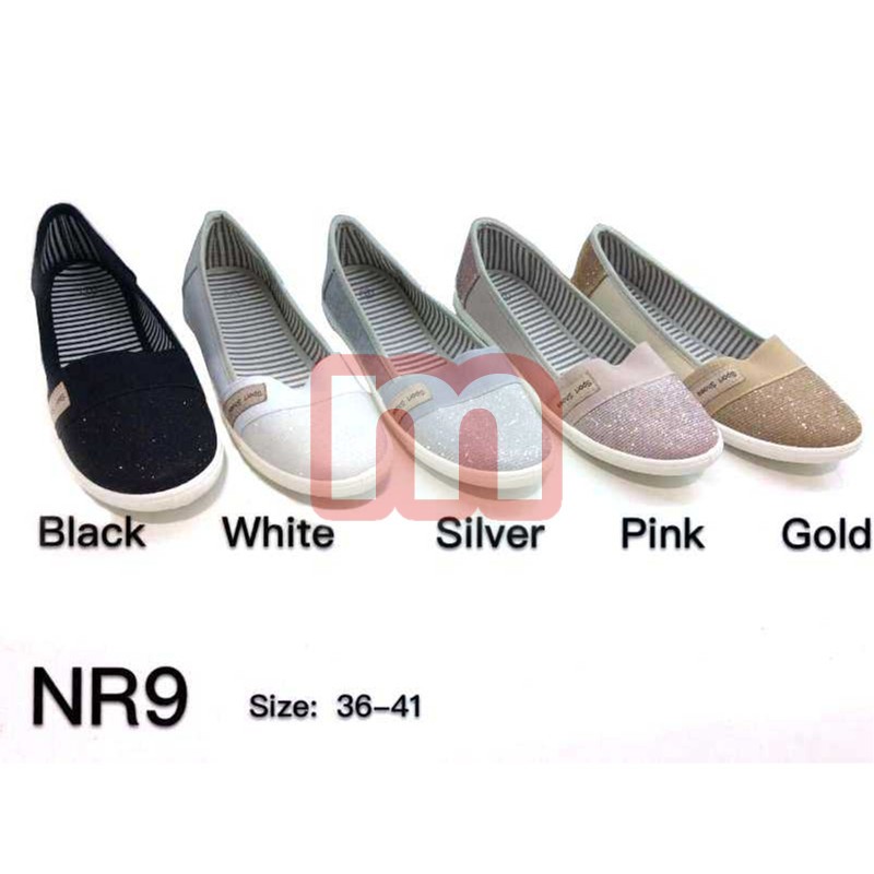 Modische Damen Schuhe Slipper Halbschuhe Ballerina. Enthalten ist das abgebildete Modell, gemischt in den Größen 36-41. Die Farbe können Sie wählen. Dieses Modell stammt aus der aktuellen Kollektion. Original verpackte Neuware. 1VE: 12 Paar Farbe: schwarz, weiß, silber, pink, gold Größe: 36-41 (gemischt) Artikel-Nr.: 01_NR9 Preis je VE: 94,80 EUR Preis einzeln: 7,90 EUR