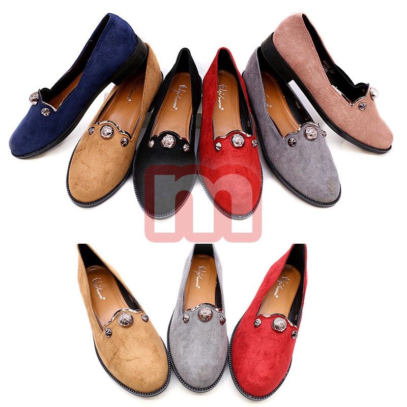 Modische Damen Schuhe Slipper Halbschuhe Ballerina. Enthalten ist das abgebildete Modell, gemischt in den Größen 36-41. Die Farbe können Sie wählen. Dieses Modell stammt aus der aktuellen Kollektion. Original verpackte Neuware. 1VE: 12 Paar Farbe: schwarz, pink, blau, grau, rot, camel Größe: 36-41