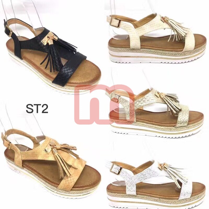 Großer Mischposten mit modischen Damen Sommer Sandalen Slipper Bade Garten Strand Schuhe in aktuellen Farben, jeweils ausgestattet mit solider Sohle, gemischt in verschiedenen Größen. Die Farben können Sie wählen. Dieses Modell stammt aus der aktuellen Kollektion. Original verpackte Neuware. 1VE: 12 Paar Farbe: schwarz, gold, silber, champagner, beige Größe: 36-41 (gemischt) Artikel-Nr.: 01_ST2