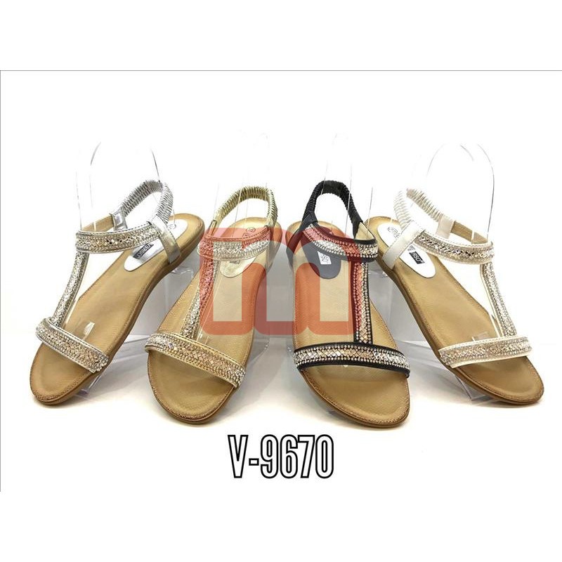 Großer Mischposten mit modischen Damen Sommer Sandalen Slipper Bade Garten Strand Schuhe in aktuellen Farben, jeweils ausgestattet mit solider Sohle, gemischt in verschiedenen Größen. Die Farben können Sie wählen. Dieses Modell stammt aus der aktuellen Kollektion. Original verpackte Neuware. 1VE: 12 Paar Farbe: schwarz, weiß, silber, gold Artikel-Nr.: 01_V-9670