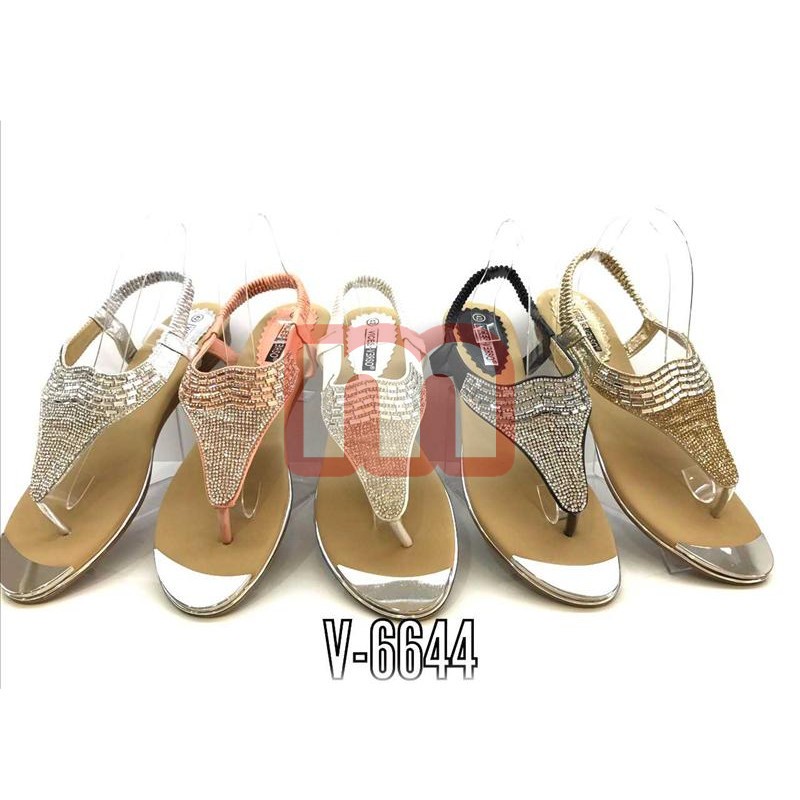 Großer Mischposten mit modischen Damen Sommer Sandalen Slipper Bade Garten Strand Schuhe in aktuellen Farben, jeweils ausgestattet mit solider Sohle, gemischt in verschiedenen Größen. Die Farben können Sie wählen. Dieses Modell stammt aus der aktuellen Kollektion. Original verpackte Neuware. 1VE: 12 Paar Farbe: schwarz, weiß, silber, gold, coral Artikel-Nr.: 01_V-6644