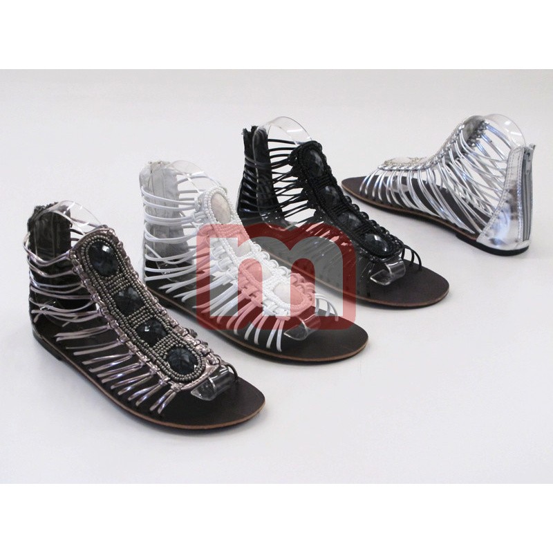 Großer Mischposten mit modischen Damen Sommer Sandalen Slipper Bade Garten Strand Schuhe in aktuellen Farben, jeweils ausgestattet mit solider Sohle, gemischt in verschiedenen Größen und die Farben können Sie wählen. Dieses Modell stammt aus der aktuellen Kollektion. Original verpackte Neuware. 1VE: 12 Paar Farbe: schwarz, weiß, silber, grau Artikel-Nr.: 01_F1013-01