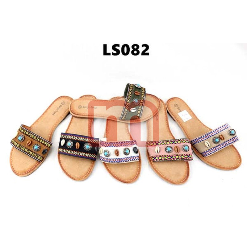 Großer Mischposten mit modischen Damen Sommer Sandalen Slipper Bade Garten Strand Schuhe in aktuellen Farben, jeweils ausgestattet mit solider Sohle, gemischt in verschiedenen Größen.