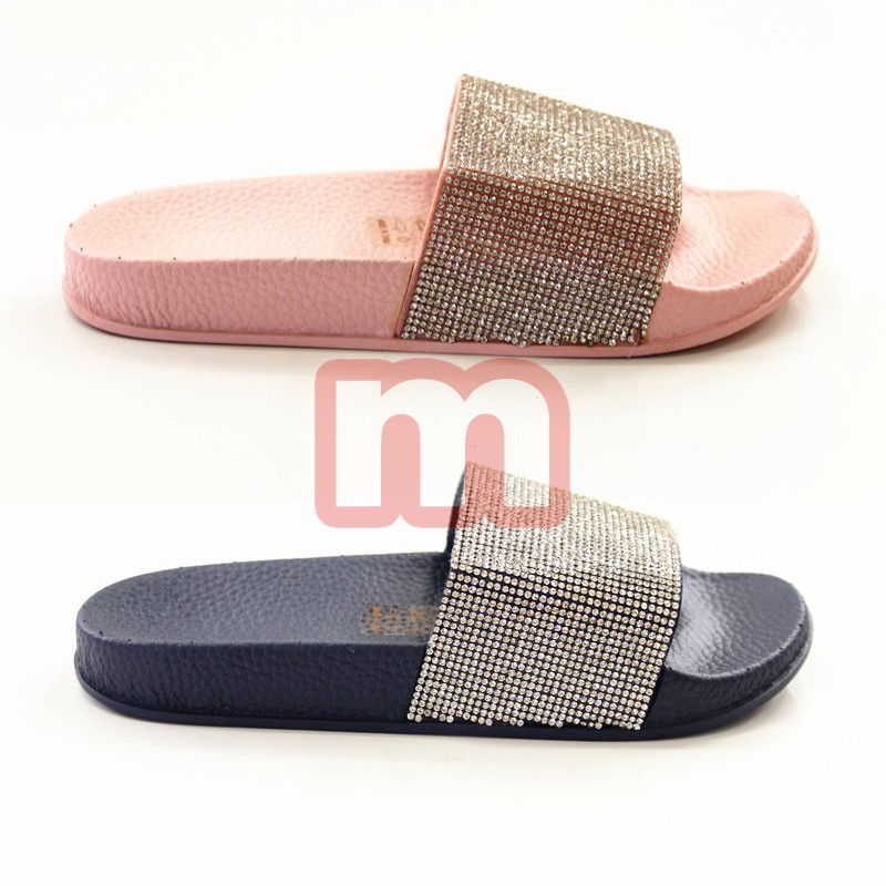 Großer Mischposten mit modischen Damen Sommer Sandalen Slipper Bade Garten Strand Schuhe in aktuellen Farben, jeweils ausgestattet mit solider Sohle, gemischt in verschiedenen Größen.
