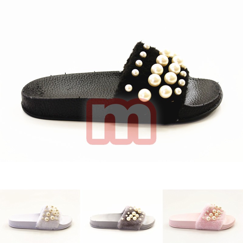 Großer Mischposten mit modischen Damen Sommer Sandalen Slipper Bade Garten Strand Schuhe in aktuellen Farben, jeweils ausgestattet mit solider Sohle, gemischt in verschiedenen Größen.