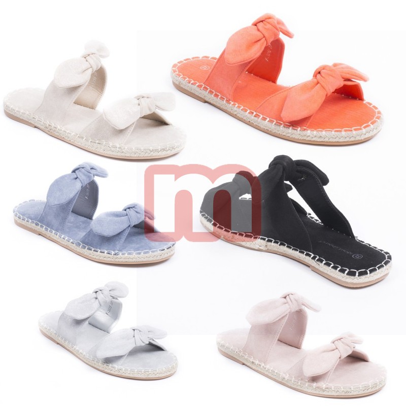 Großer Mischposten mit modischen Damen Sommer Sandalen Slipper Bade Garten Strand Schuhe in aktuellen Farben, jeweils ausgestattet mit solider Sohle, gemischt in verschiedenen Größen.