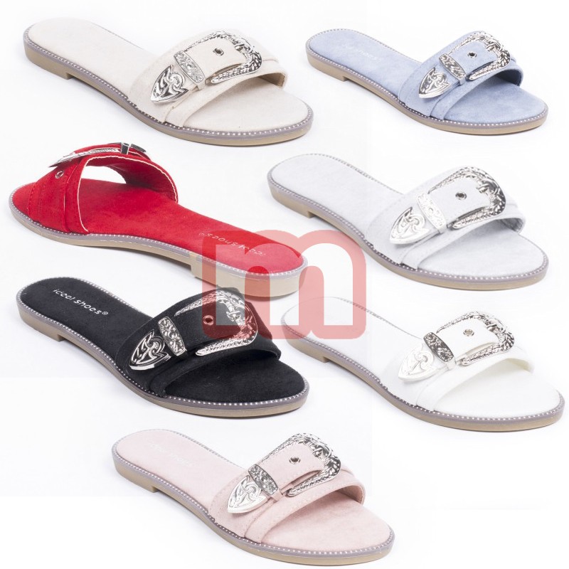 Großer Mischposten mit modischen Damen Sommer Sandalen Slipper Bade Garten Strand Schuhe in aktuellen Farben, jeweils ausgestattet mit solider Sohle, gemischt in verschiedenen Größen.