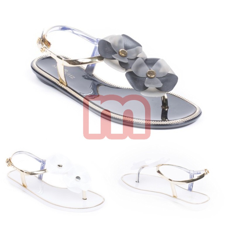 Großer Mischposten mit modischen Damen Sommer Sandalen Slipper Bade Garten Strand Schuhe in aktuellen Farben, jeweils ausgestattet mit solider Sohle, gemischt in verschiedenen Größen.