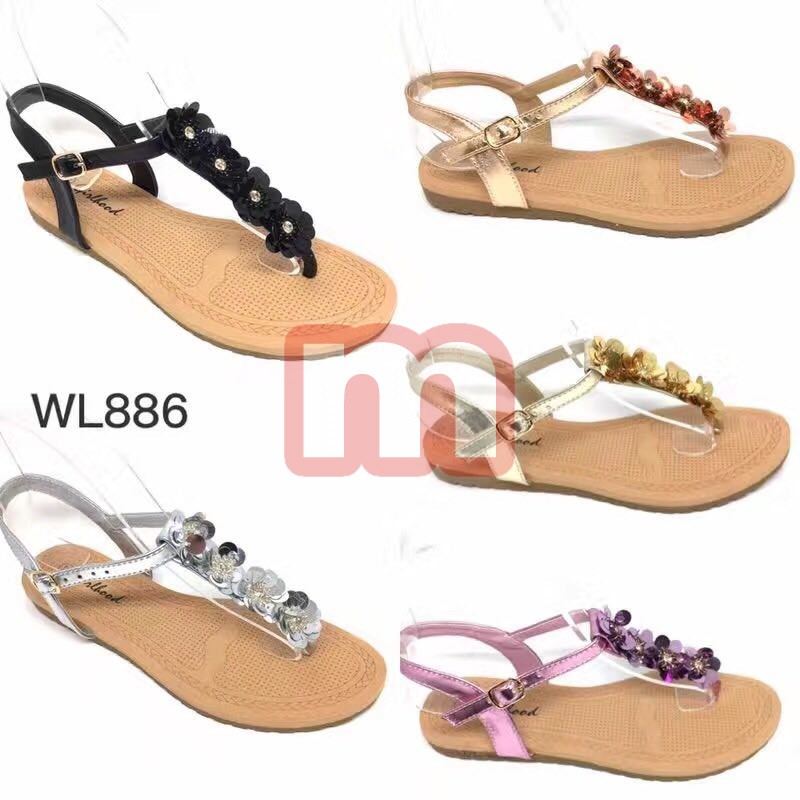 Dieses Modell stammt aus der aktuellen Kollektion. Original verpackte Neuware. 1VE: 12 Paar Farbe: schwarz, gold, silber, champagner, purple Größe: 36-41 (gemischt) Artikel-Nr.: 01_WL886