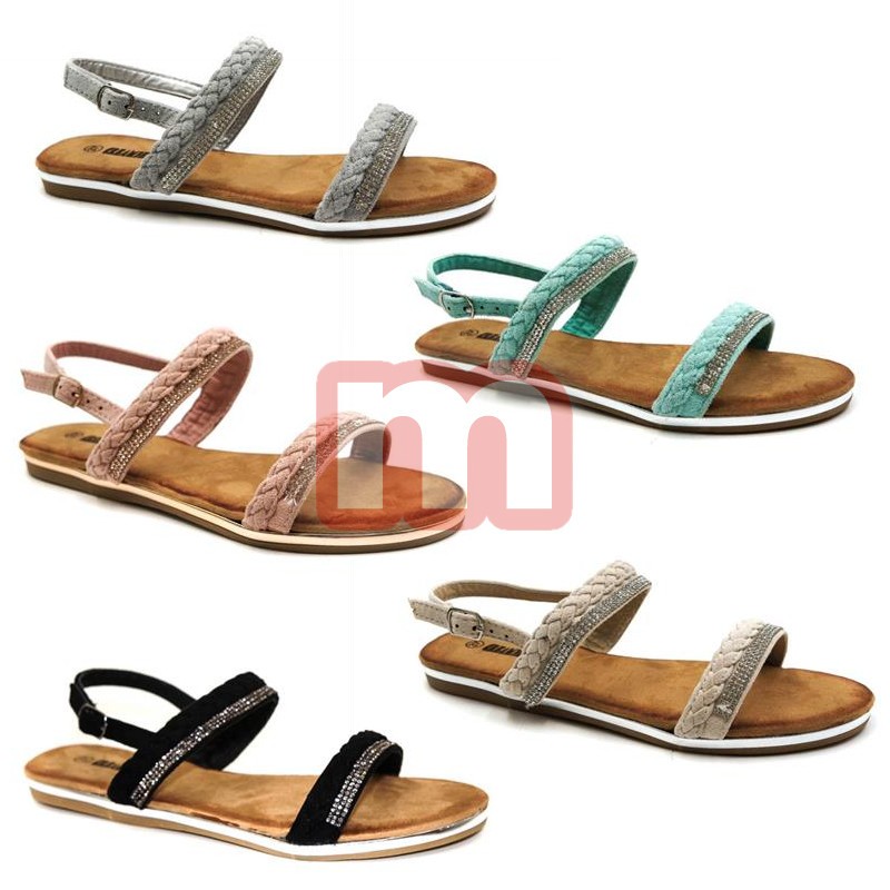 Großer Mischposten mit modischen Damen Sommer Sandalen Slipper Bade Garten Strand Schuhe in aktuellen Farben, jeweils ausgestattet mit solider Sohle, gemischt in verschiedenen Größen.