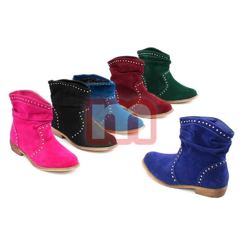 Modische Damen Stiefel Schuhe in Wildlederoptik (Imitat), jeweils ausgestattet mit einer stabilen Sohle sowie Applikationen, gemischt in den Größen 36-41. Die Farbe können Sie selbst wählen. Dieses Modell stammt aus der aktuellen Kollektion. Original verpackte Neuware. 1VE: 12 Paar Farbe: Schwarz, Grün, Fuchsia, Rot, Hellblau und Dunkelblau (wählbar) Größe: 36-41 (gemischt) Artikel-Nr.: 01_dsy067 Preis je VE (12 Paar): 94,80 EUR Preis je Paar: 7,90 EUR