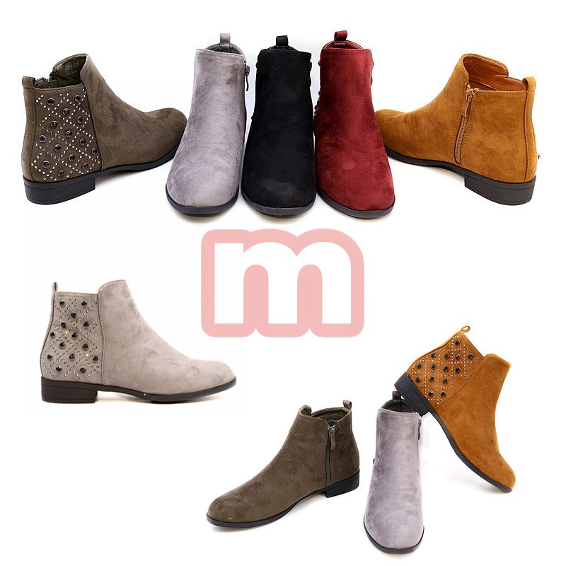 Modische Damen Stiefeletten Stiefel Schuhe für Herbst, Winter, Frühling. Enthalten ist das abgebildete Modell mit Absatz, gemischt in den Größen 36-41. Die Farbe können Sie selbst wählen. Ideal für Kleid, Rock oder Hose, aus der laufenden Kollektion. Original verpackte Neuware. 1VE: 12 Paar Größen: 36-41 (gemischt) Farben: schwarz, grau, rot, grün, camel (wählbar) Artikel Nr.: 01_L1221-D2