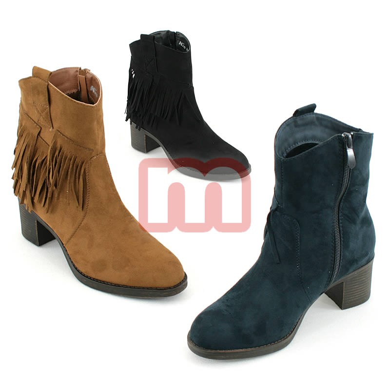 Modische Damen Western Stiefel Boots Schuhe mit Fransen in Wildleder-/Lederoptik (Imitat), jeweils ausgestattet mit einem dezenten Absatz und Applikation, gemischt in den Größen 36-41. Die Farbe können Sie selbst wählen. Dieses Modell stammt aus der aktuellen Kollektion. Original verpackte Neuware. 1VE: 12 Paar Farbe: schwarz, blau, camel (wählbar) Größe: 36-41 (gemischt) Artikel-Nr.: 01_qq38 Preis je VE : 210,00 EUR Preis einzeln: 17,50 EUR