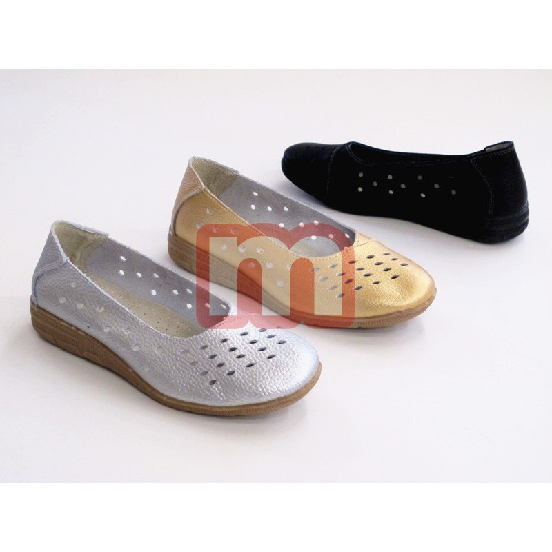 Echtes Leder! - Modische Damen Schuhe Slipper Halbschuhe Ballerina mit Musterung. Enthalten ist das abgebildete Modell, gemischt in den Größen 36-41. Die Farbe können Sie wählen. Dieses Modell stammt aus der aktuellen Kollektion. Original verpackte Neuware. 1VE: 12 Paar Farbe: schwarz, gold, silber Größe: 36-41 (gemischt) Artikel-Nr.: 01_H805 Preis je VE: 85,80 EUR Preis einzeln: 7,15 EUR