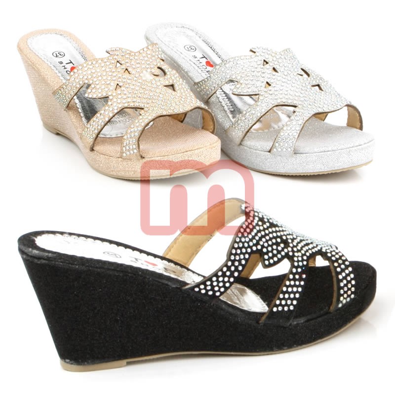 Modische Damen Schuhe Slipper Sandalen, jeweils ausgestattet mit Verzierungen. Enthalten ist das abgebildete Modell, gemischt in den Größen 36-41. Die Farbe können Sie selbst wählen. Dieses Modell stammt aus der aktuellen Kollektion. Original verpackte Neuware. 1VE: 12 Paar Farben: Schwarz, Silber, Gold (wählbar) Größe: 36-41 (gemischt) Artikel-Nr.: 01_119 Preis je VE : 78,00 EUR Preis einzeln: 6,50 EUR