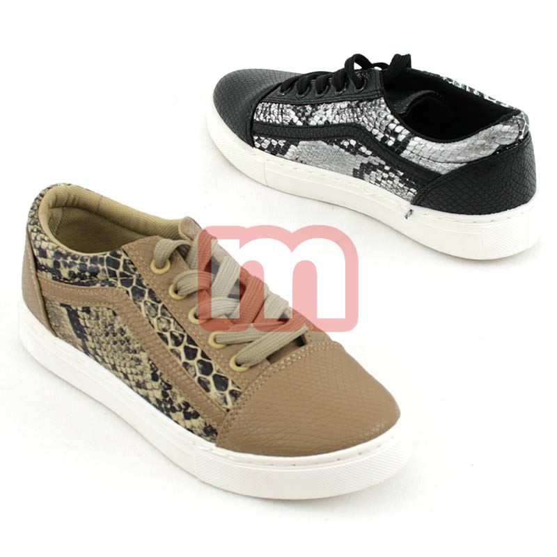 Modische Damen Freizeit Sport Schuhe Sneaker in tollen aktuellen Farben, jeweils ausgestattet mit solider Sohle und Schnürbändern, gemischt in verschiedenen Größen. Die Farbe können Sie wählen. Dieses Modell stammt aus der aktuellen Kollektion. Original verpackte Neuware. 1VE: 12 Paar Farben: schwarz, beige (wählbar) Größe: 36-41 (gemischt) Artikel-Nr.: 01_15-8 Preis je VE: 57,00 EUR Preis einzeln: 4,75 EUR