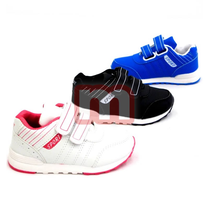 Modische Kinder Freizeit Sport Schuhe Sneaker mit Klettverschluss. Enthalten ist das abgebildete Modell, gemischt in den abgebildeten Farben. Die Größen können Sie selbst wählen (25-30 oder 31-36). Dieses Modell stammt aus der aktuellen Kollektion. Original verpackte Neuware. 1VE: 24 Paar Farben: Schwarz, Weiß, Blau (gemischt) Größen: 25-30 oder 31-36 (wählbar) Artikel-Nr.: 03_ab-17 Preis je VE (24 Paar): 138,00 EUR Preis je Paar: 5,75 EUR