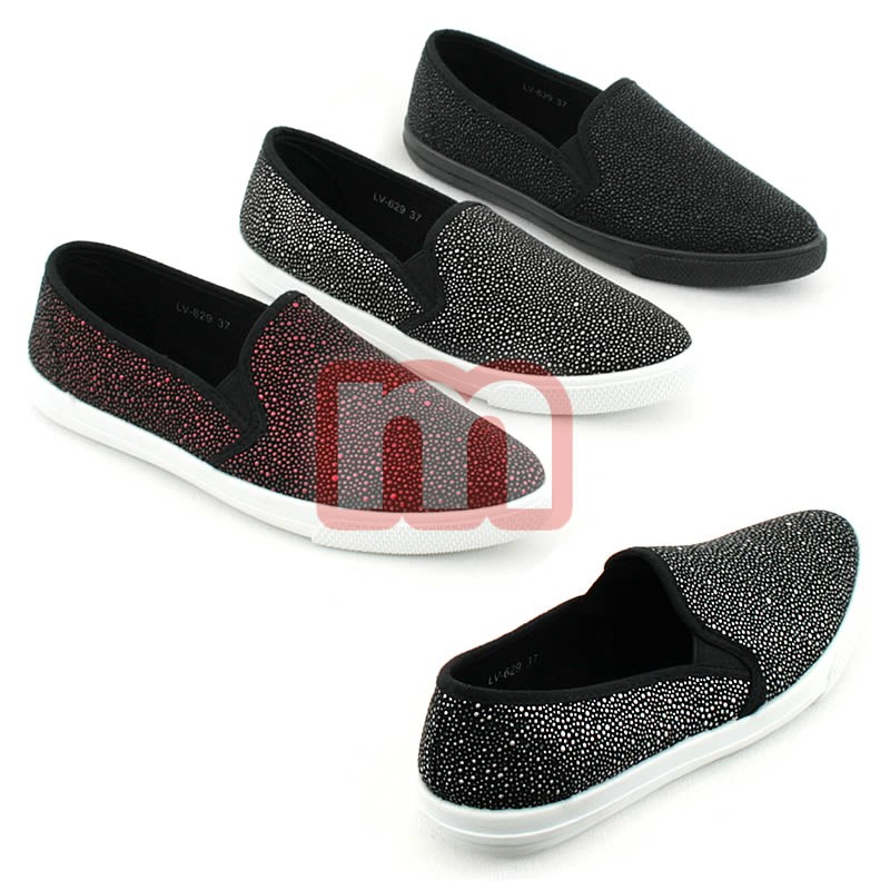 Modische Damen Freizeit Schuhe Sneaker Slipper Mokassins, jeweils ausgestattet mit solider Sohle und Glitzersteinchen, gemischt in verschiedenen Größen. Die Farbe können Sie wählen. Diese Modelle stammen aus der aktuellen Kollektion. Original verpackte Neuware. 1VE: 12 Paar Farben: schwarz, silber, weiß, rot (wählbar) Größe: 36-41 (gemischt) Artikel-Nr.: 01_LV-629 Preis je VE: 82,80 EUR Preis einzeln: 6,90 EUR